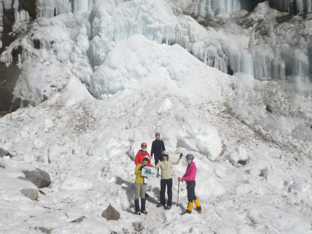 ◆日光雲竜渓谷 100m氷瀑の下に到達 氷結した谷を2時間アイゼンとピッケルで歩く