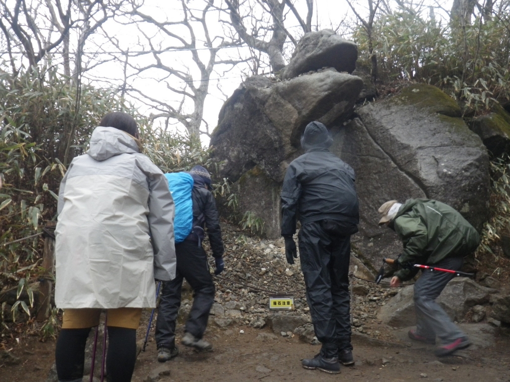 ■女体山から御ヶ幸原に途中にある「ガマ岩」口の中に願いを込めて石を投げ入れる
