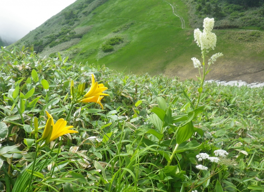 ●上越の名山 巻機山1967m 稜線に咲く ニッコウキスゲ+コバイケイソウ