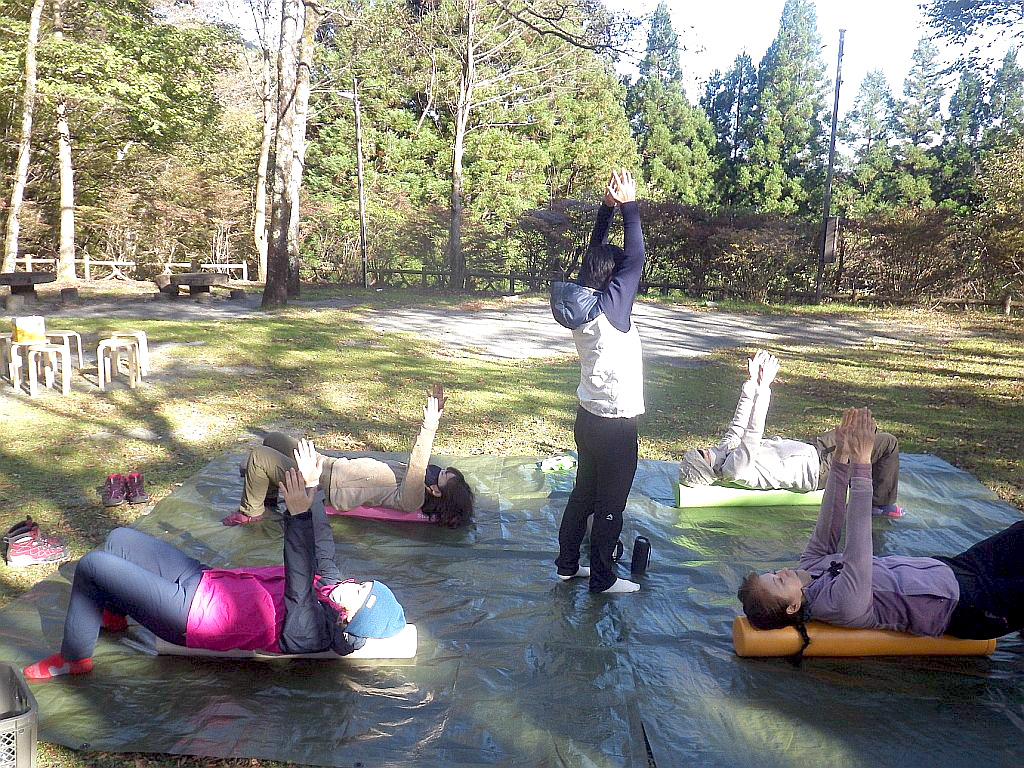 ■利平茶屋キャンプ場 で ヒメトレ開始 体のばす