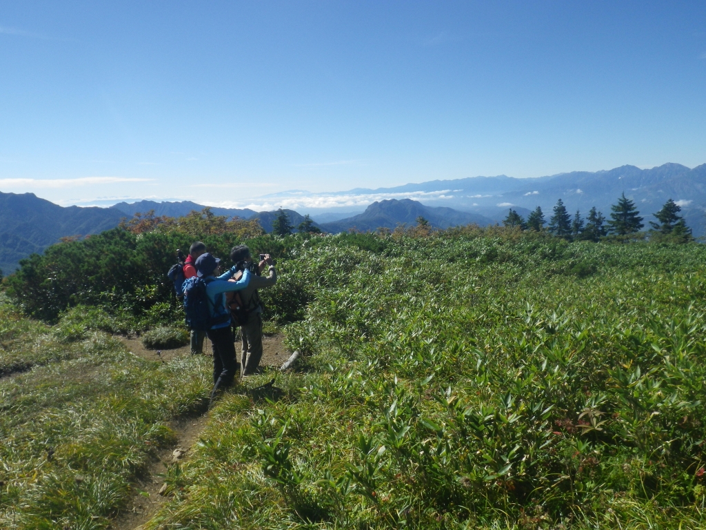 10/8-9ハイキングC「越後三山2085m」中ノ岳避難小屋泊 増島/井上 黒羽 長谷川Ms
