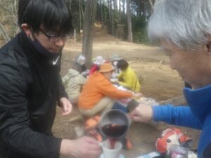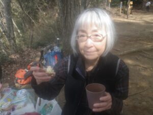 ◆山カフェ開始 ドリップカフェ オープンサンド/豪華賢覧 横通過する家族連れ驚嘆
