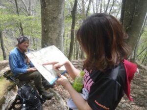 ◆沢筋のトレイルから尾根に取り付く ◆地図確認