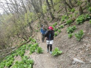 ◆夢見平到着 ◆トレイルの斜面には「コバイケイソウ群生」