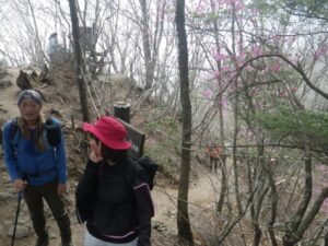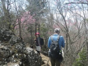 ◆例年より3週間早く満開のアカヤシオツツジ ◆八丁平へのトレイル分岐
