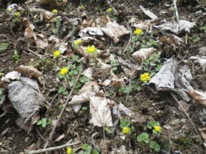 ◆ コガネネコノメソウ ◆山頂にアカヤシオツツジ咲く