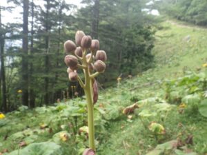 ◆夏の花 マルハダケブキのつぼみ ◆群生する マルハダケブキ
