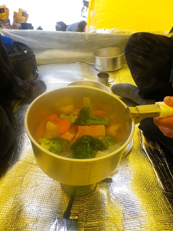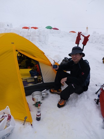 び テント組雷鳥平にて幕営。午後、山荘組テントを 訪問。