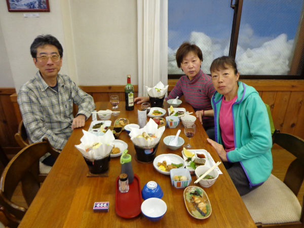 ■天は我が友人・快晴 ■小屋組の3人 [雷鳥荘] ■雷鳥荘でアルピニストの会話はずむ