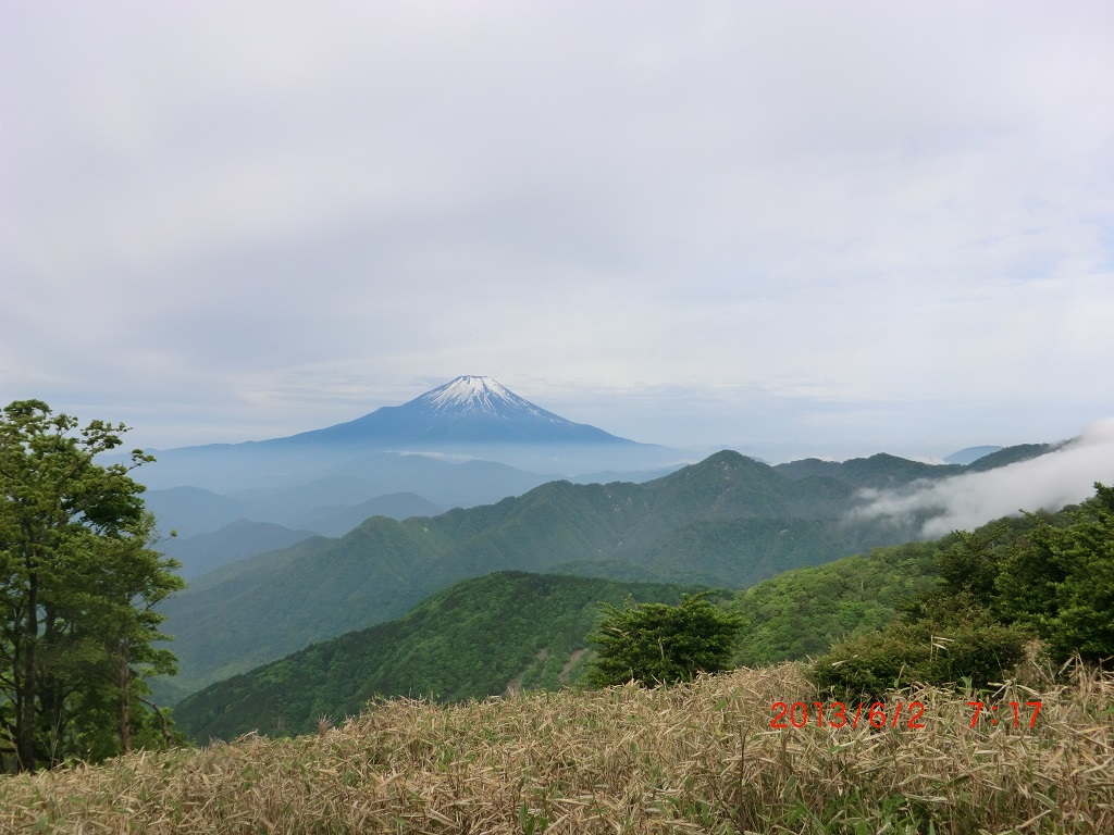 (6月2日) 蛭ヶ岳山荘(5:45)~不動ノ峰休憩所(6:30)~丹沢山(7:00~7:10)~塔ノ岳(8:05~8:15)~鍋割山(9:15~9:30)~後沢乗越(10:04~10:15)~大倉(11:55)