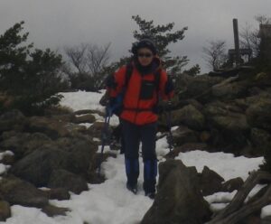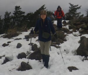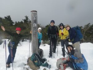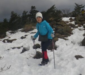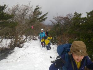 ◆スキー場内の登山道を1時間/雪が出てきたのでアイゼン着用 ◆0945 五葉松平到着