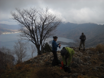 ●眼下には紅葉終了した中禅寺湖ヶ「ガ~ん」と広がる。