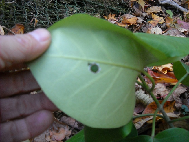 ■葉っぱにはまあルイ穴・蝶の幼虫が食べました。■森のオブジェ+森の人面樹発見