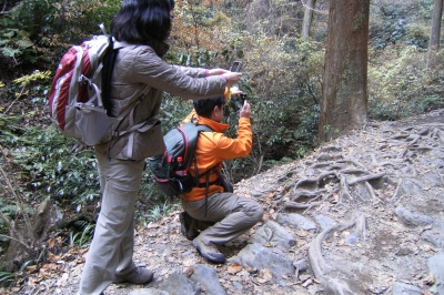 午前中は高尾山口から6号路約3kmをポイントごとに撮影実習。