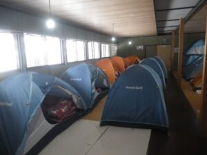 ■双子池ヒュッテの大部屋(1人用テントに布団)