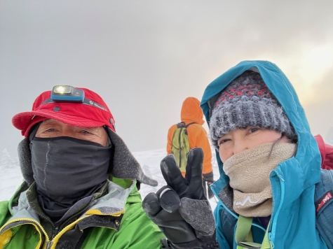 ■2024年元旦 午前7時10分 雲が下がり二子山山頂2224m・御来光拝観 氷点下10度以下 風10m