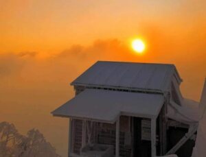 ■朝陽に輝く「双子池ヒュッテ」