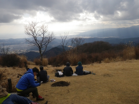 ■1/7 午前1155鍋割山1272m 山頂に立つ/寒い 富士山残念姿隠しました。