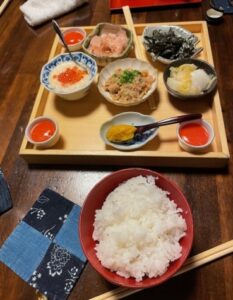 ■神戸牛ワイン煮 びっくりするほど柔らかい ■かわすみ+卵黄身+とろろ芋+赤だし味噌汁