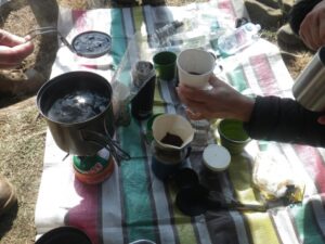 ■山頂で山カフェ ミャンマーからのカフェをドリップ カフェ班3名