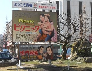 昭和レトロ街 昭和30年代の懐かしの映画看板が商家の店頭に掲示