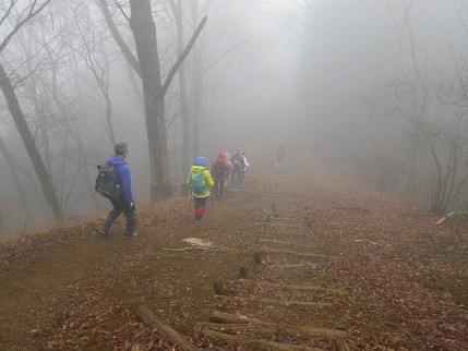◆月夜見山から小河内峠をガスの中目指す。