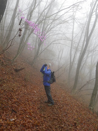 ◆森の神の「ふふ~」の一言で森はガスのなか。ヤシヲつつじの花 光る。