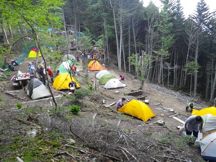 ■6/21 テント場には60張 若者が多い ■小屋の夕食は「定番カレー」