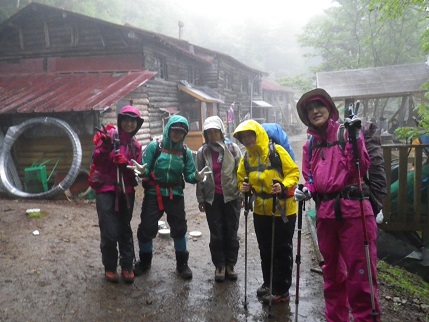 ■6/22 早朝0550雨の中下山開始 ■びしょぬれで「笛吹きの湯」につかる