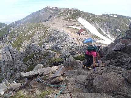 | ・宝剣山荘→宝剣岳→三ノ沢岳分岐経由→千畳敷駅 | ・岩場 鎖のアップダウンが短い時間の中に凝縮され、最後に急斜面の雪渓の下り。 | |||||||||||||