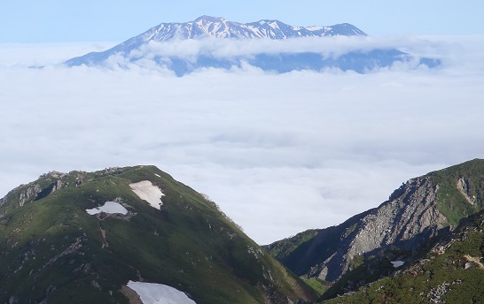 | ・雲海に浮かぶ山々の中に今回中止となった御岳がそびえていました。 | ||||||||||||||