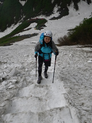 ■横尾谷本谷にかかるつり橋 ■涸沢は残雪3m ■北穂沢から南稜に向かう。