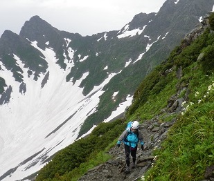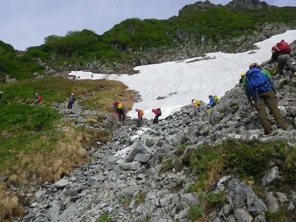■第一鎖場を超えて南稜に出た。「ぎゃはは~」■ハクサンイチゲ咲く道をともかく登る・