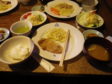 ■北穂小屋の夕食は「ポークジンジャー」皿には「イワツメクサ」マーク入り
