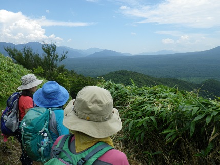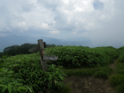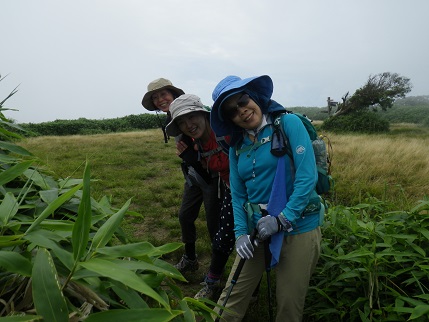 ■山頂は広々した平原・熊笹覆う登山道・シャララ・バララ かき分け歩く