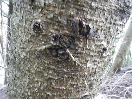 ■東海道自然歩道が続く ■木々には「人面」と「トロロ」の顔刻まれる。