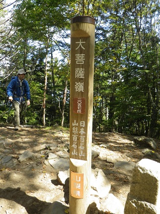 峠にはトイレもある。稜線を北にたどると、日本百名山の一つである「大菩薩嶺」(2057メートル)に至る。