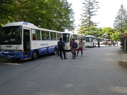 ■登山口の上日川峠の案内板■登山バッチこんなにたくさんある ■JR甲斐大和駅と上日川峠を結ぶ臨時バス。