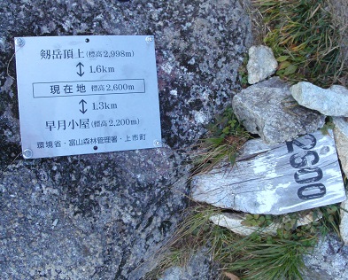 剣岳山頂(7:55~8:15)~2,600M(9:15~9:30)~早月小屋(10:15~10:30)~
