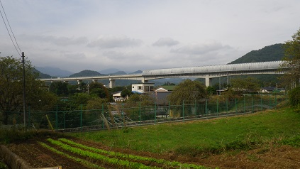 池の山コースの展望台からはリニア実験線の高架と富士山が一緒に望める。