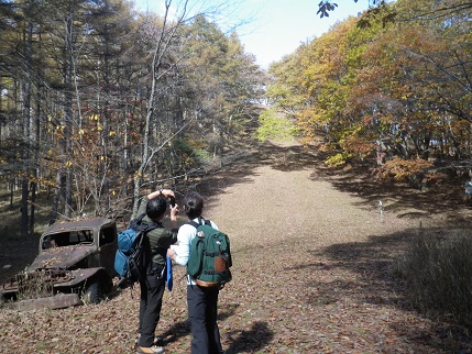 ■白沢峠 防火帯にはどういううわけか、進駐軍「米軍」の60年前のトラックが乗り捨てられている。
