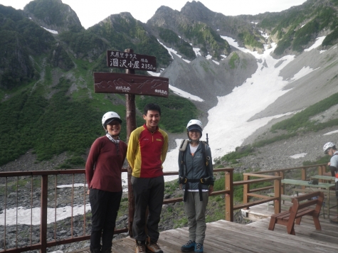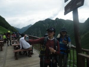 ■涸沢小屋テラス 長野県警山岳警備隊員 と 記念写真 /前穂高の北尾根⁺ 吊尾根