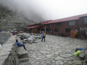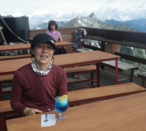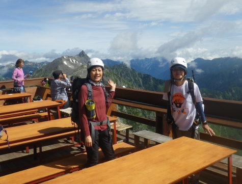 ■涸沢小屋到着 常念岳・屏風の頭 ■小屋のテラス