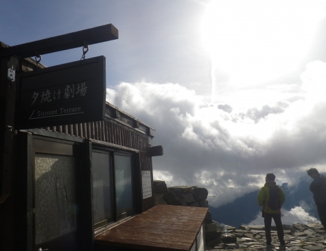 ■穂高岳山荘の西側(鎌田側/岐阜県側)に夕日が沈む