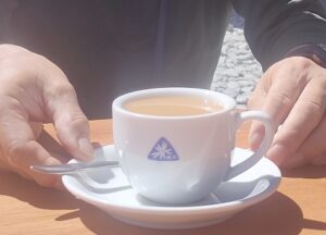 ■北穂高小屋のテラス 槍ヶ岳を見る 感動