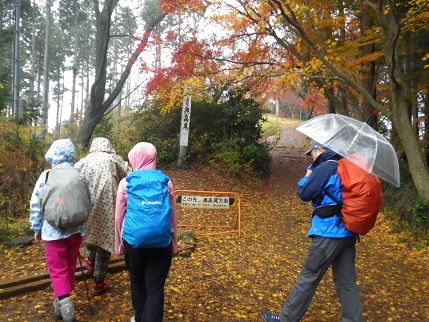 ■稲荷コーススタート ■休憩 人少なくのんびり ■雨の高尾山頂