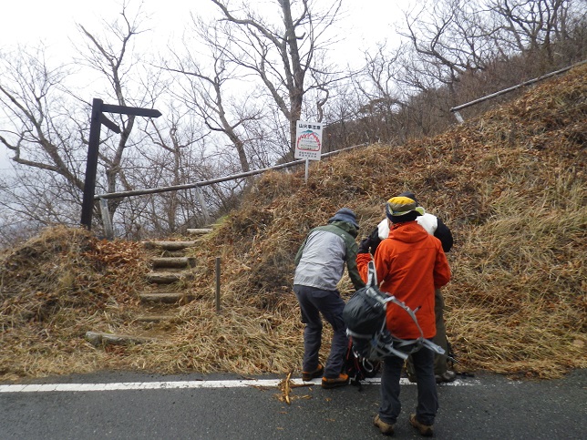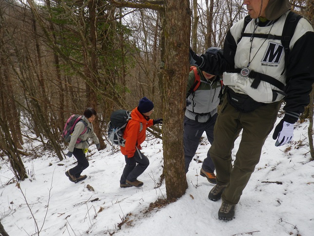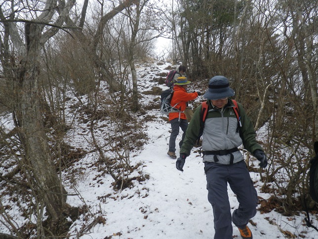 ■雪の斜面を下降 アイゼンなしで降りる ■二十六夜山頂の峠には林道 ■?????????