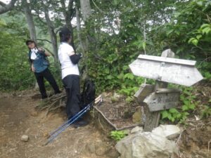 ■天狗のたまり場を過ぎて 山頂の標識見える ■肩の小屋下の標識到着