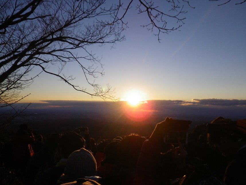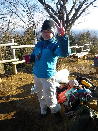 ■日の出山 山頂でご来光を仰いだ面々と女子