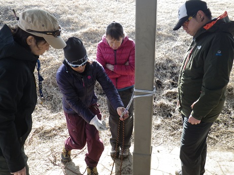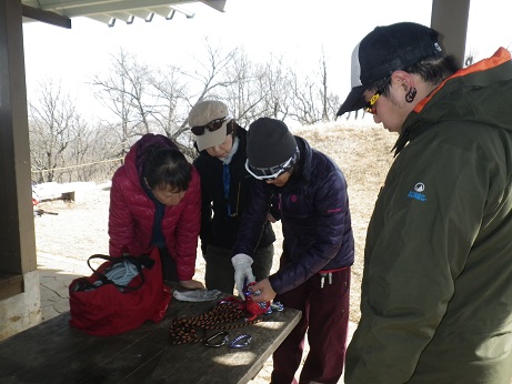 ◆山頂でもう一度地図を確認「むむむなかなか難しい」◆三角巾を使う ◆ロープワーク基礎